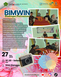 dari Kementerian Agama (Kemenag) yang ditujukan bagi calon pengantin (catin), bagi tiga pasangan langsung untuk mempersiapkan diri sebelum menikah. Program ini wajib diikuti karena bertujuan membekali catin dengan pengetahuan dan keterampilan untuk membangun keluarga yang kokoh, harmonis, serta mencegah masalah rumah tangga seperti perceraian dan stunting.
