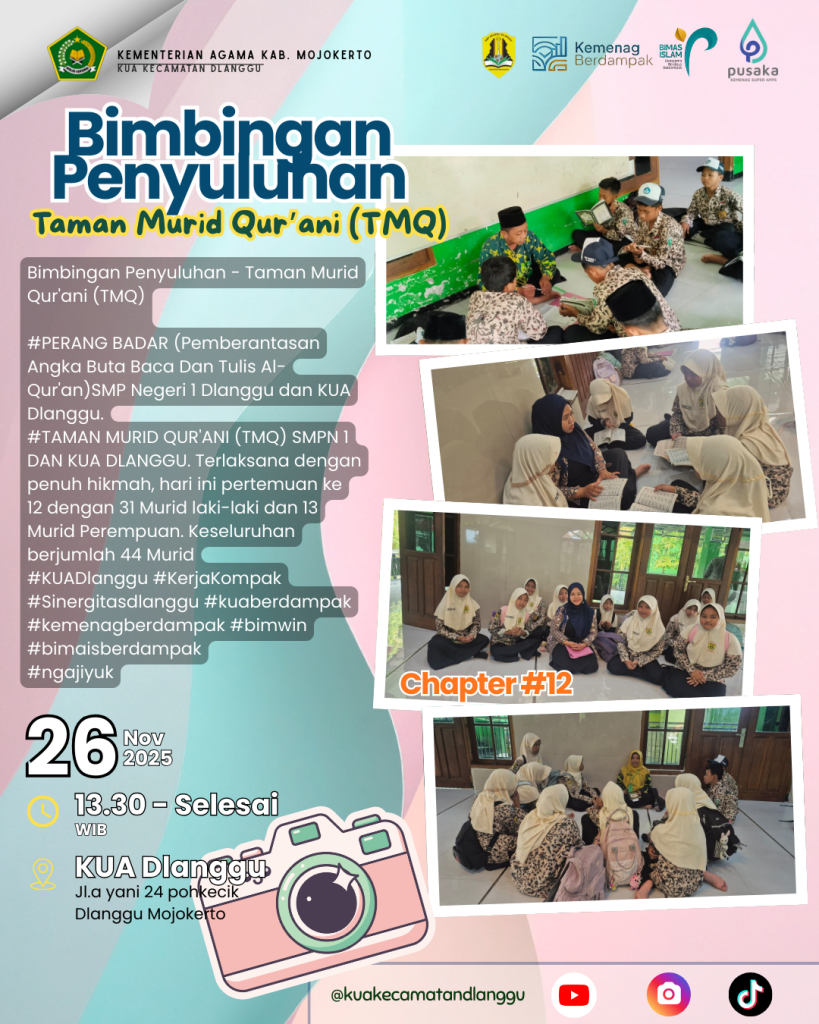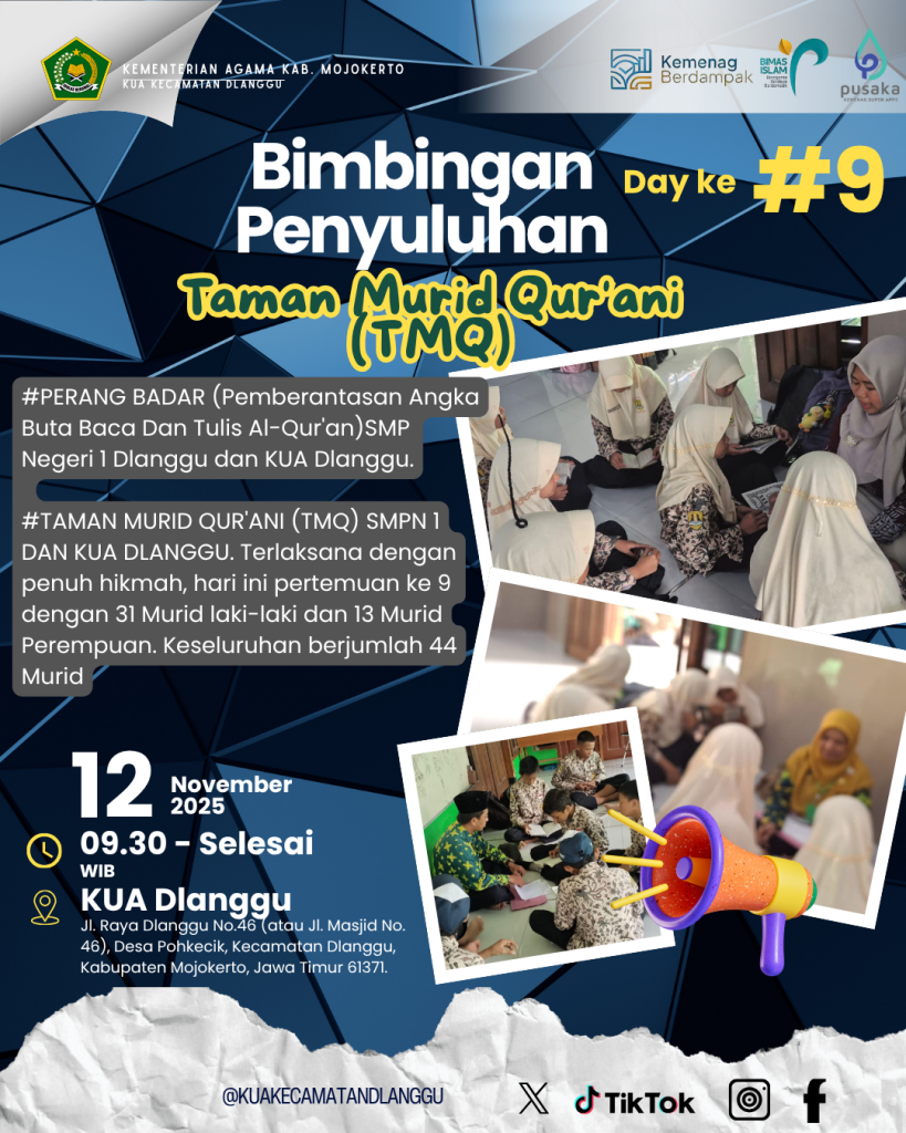 Hashtag Unggulan: #KUADlanggu #KemenagMojokerto #KemenagBerdampak #InspirasiDlanggu #GenerasiQurani #CegahStunting #BimbinganRohani #BRUS #MojokertoSmart