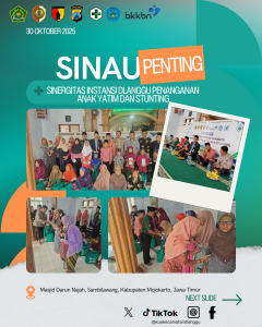 Kecamatan Dlanggu bergerak serentak melalui program SINAU PENTING (Sinergitas Instansi Dlanggu Penanganan Anak Yatim dan Stunting) yang dilaksanakan pada 30 Oktober 2025 di Masjid Darun Najah, Sambilawang.